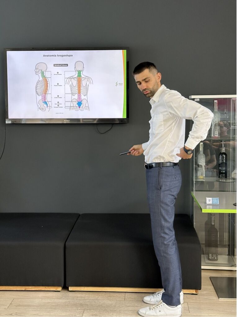W dniach 12-13 września 2025 roku mieliśmy przyjemność prowadzić szkolenia wraz z ćwiczeniami dla pracowników biurowych i produkcyjnych w firmie Belvedere Vodka w Żyrardowie. Tym razem zakres tematów obejmował profilaktykę dolegliwości kręgosłupa dla osób pracujących na siedząco oraz pracowników fizycznych.